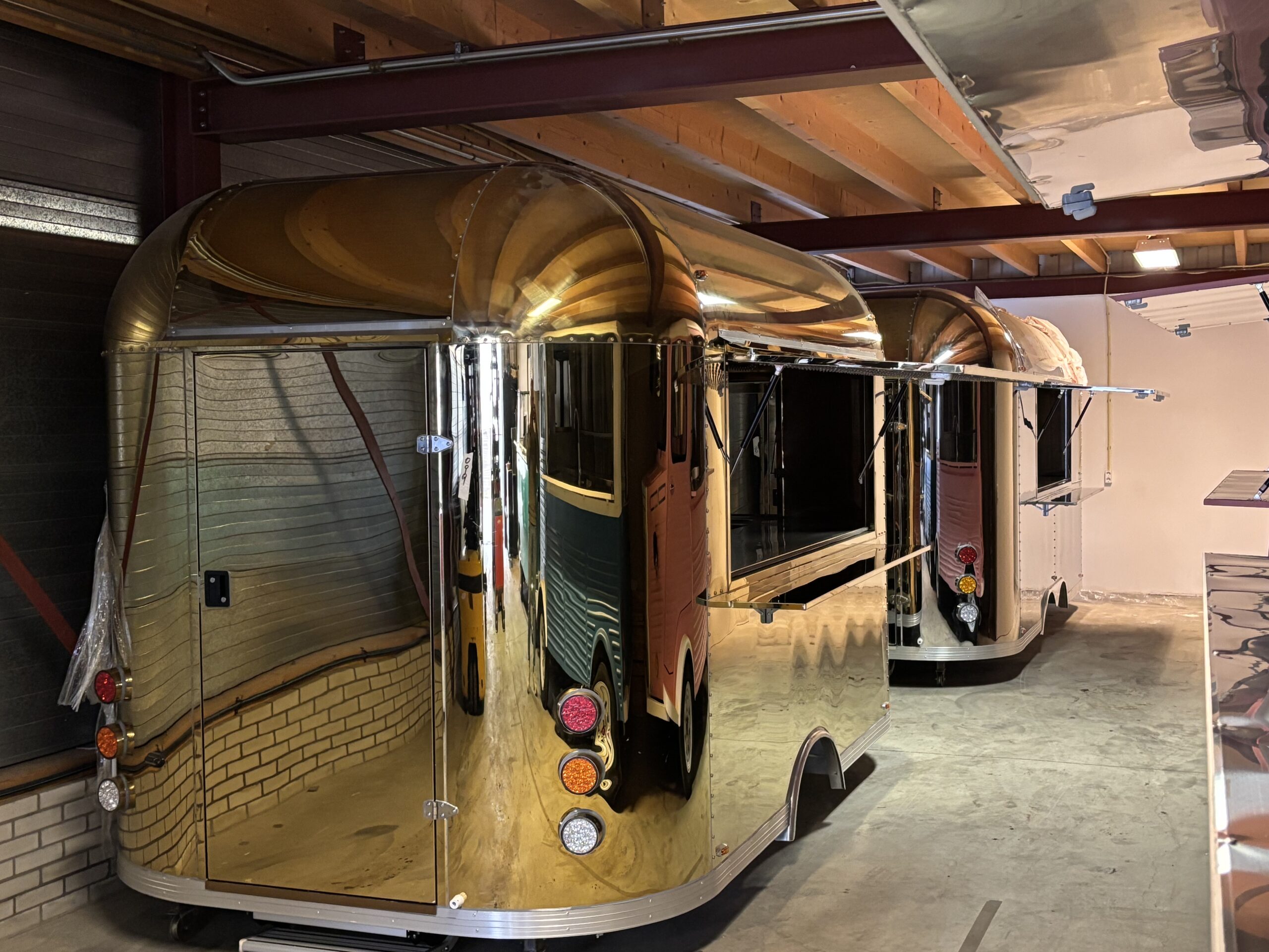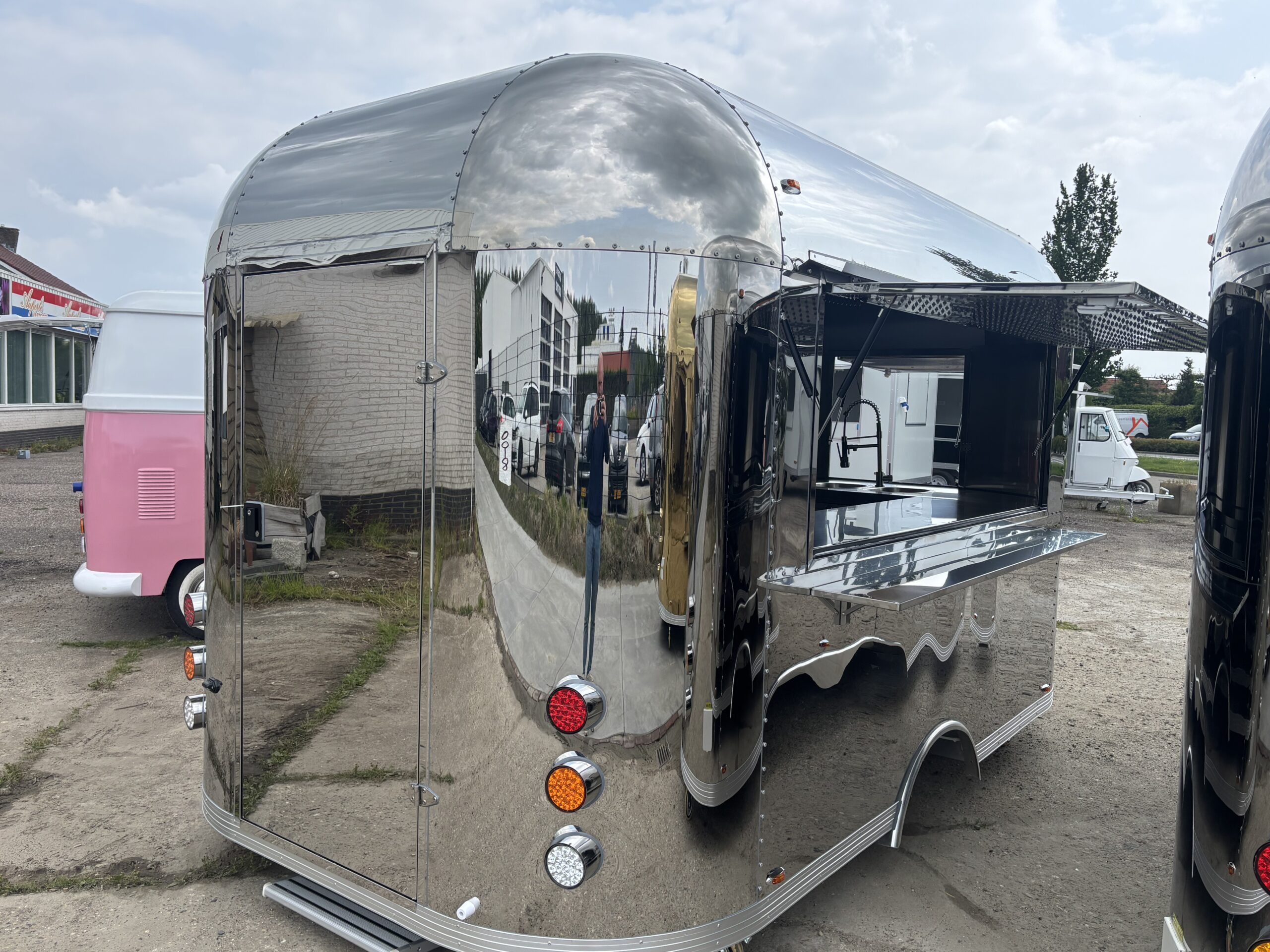 Zet jouw mobiele horecaconcept in de spotlight met onze iconische Airstream Replica foodtrailer. Dankzij de glanzende afwerking, het opvallende design en de slimme functionaliteit is deze trailer ideaal voor streetfood, mobiele bars, pop-up activaties en merk-events. Kies uit meerdere formaten om jouw onderneming stijlvol en professione el te laten opereren.