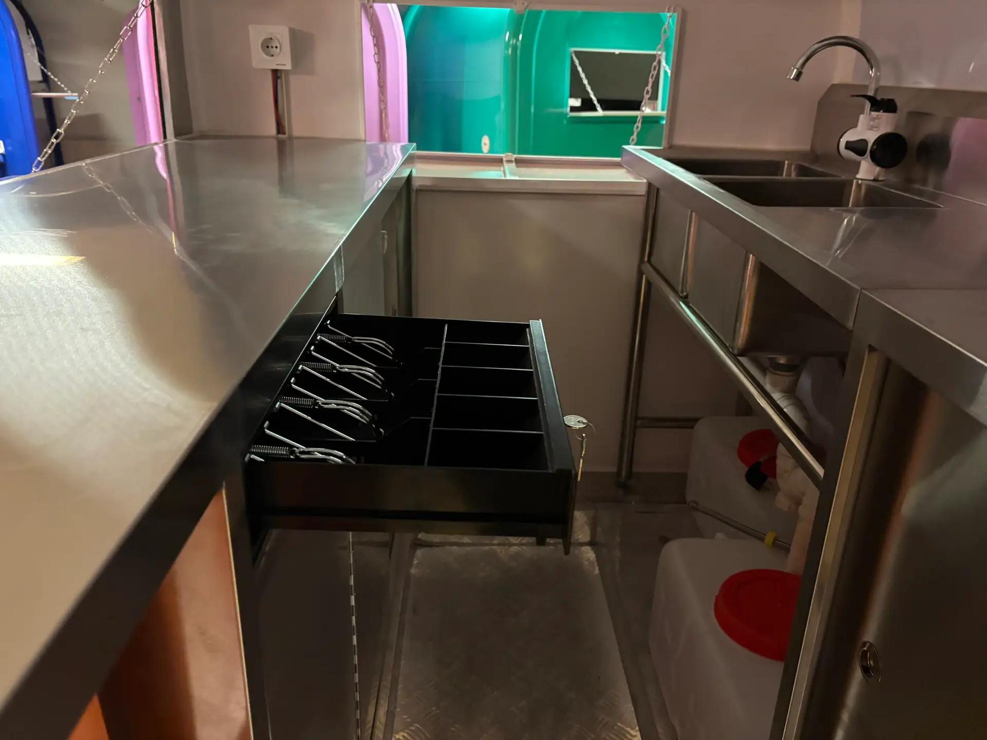 • Optioneel: apparatuur ingebouwd (koelkast, frituur, bakplaat, etc.)
