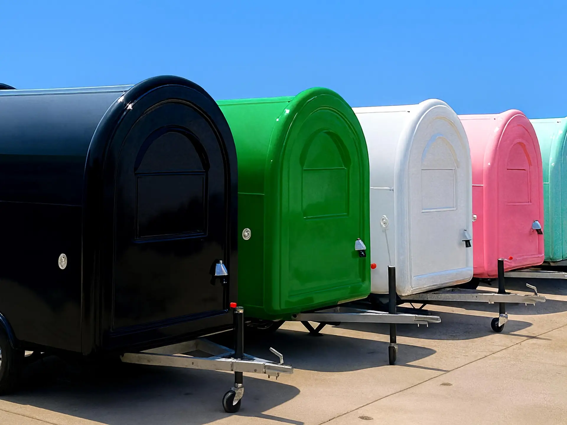De Round Top is de meest gangbare foodtrailer. Dankzij zijn elegante afgeronde vorm en moderne afwerking trekt hij onmiddellijk de aandacht op elk event. Perfect voor ondernemers die mobiliteit, kwaliteit en uitstraling willen combineren. Van koffiebar tot streetfoodconcept met de Round Top creëer jij een professionele, herkenbare en winstgevende mobiele keuken.