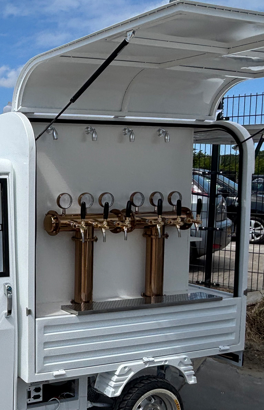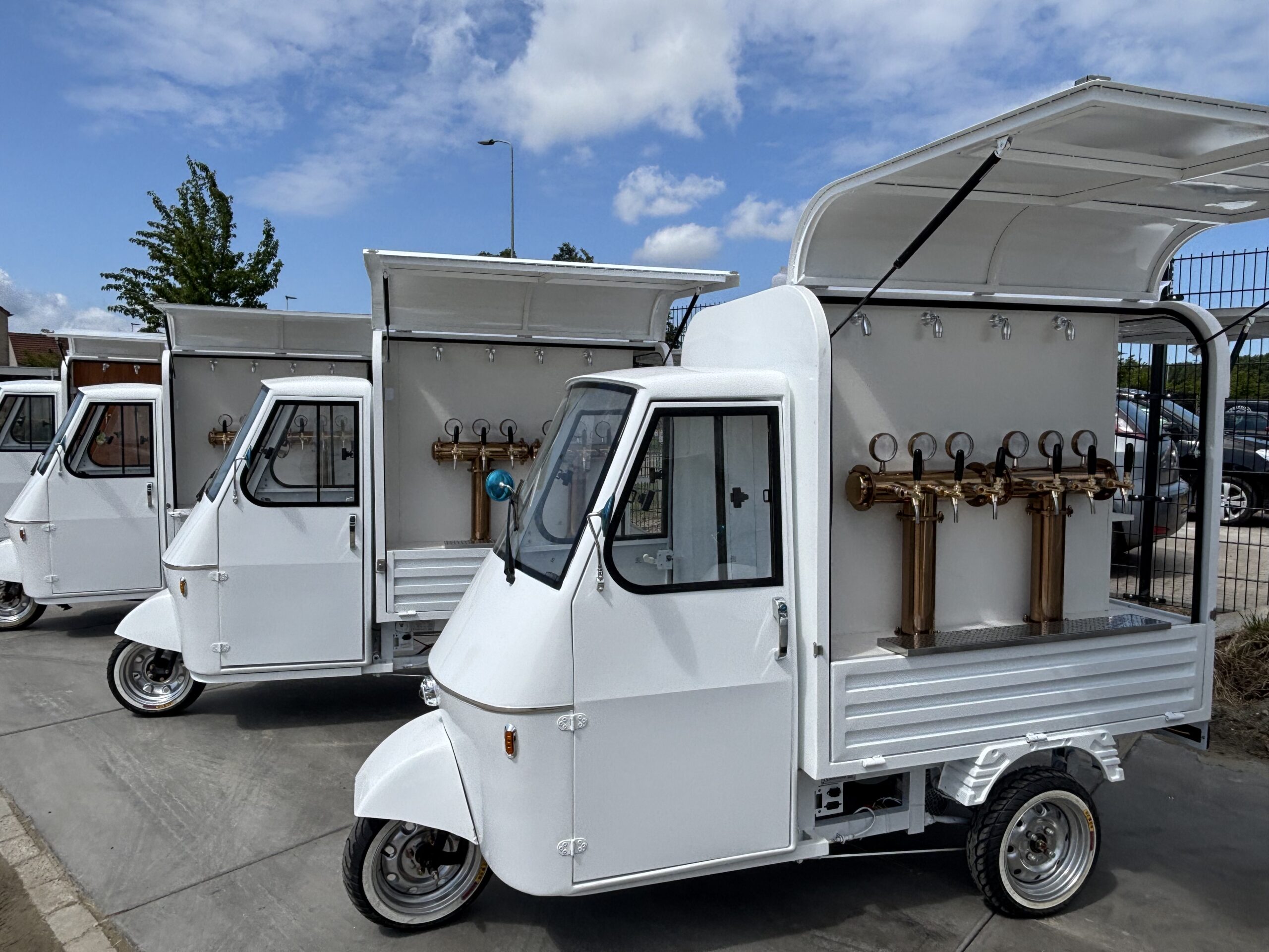 Ja, de trike is volledig maatwerk: kleur, branding, binneninrichting, apparatuur en layout zijn volledig aanpasbaar. Van koffie- en espressobar tot cocktail-tuk-tuk of ijsstation, alles is mogelijk.